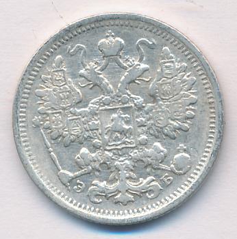 Лицевая сторона — гербовый орел, оборотная —обозначение номинала (15 копеекъ), окруженное венком из лавровой и дубовой ветвей и дата.