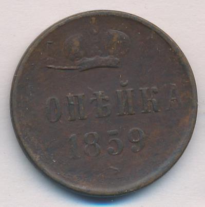 Лицевая сторона — вензель Николая I, оборотная — обозначение номинала (копейка) и дата. Нормативный вес — 5,12 грамма, гурт гладкий.