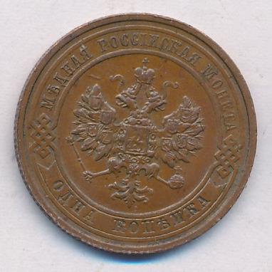 Лицевая сторона — двуглавый орел, надпись МЕДНАЯ РОССIЙСКАЯ МОНЕТА и обозначение номинала (одна копейка); оборотная — обозначение номинала (1 копейка) в бусовом ободке и дата. Нормативный вес — 3,28 грамма, гурт рубчатый.