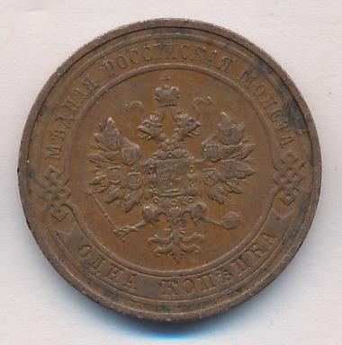 Лицевая сторона — двуглавый орел, надпись МЕДНАЯ РОССIЙСКАЯ МОНЕТА и обозначение номинала (одна копейка); оборотная — обозначение номинала (1 копейка) в бусовом ободке и дата. Нормативный вес — 3,28 грамма, гурт рубчатый.