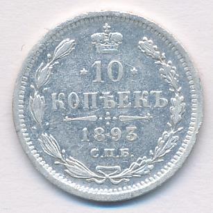 Лицевая сторона — гербовый орел, оборотная —обозначение номинала (10 копеекъ), окруженное венком из лавровой и дубовой ветвей и дата.