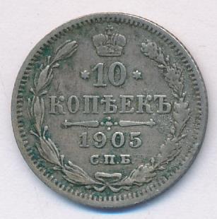 Лицевая сторона — гербовый орел, оборотная —обозначение номинала (10 копеекъ), окруженное венком из лавровой и дубовой ветвей и дата.