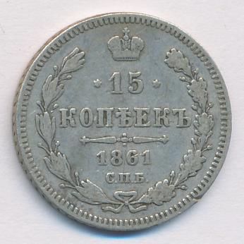 В 1861 году из-за перегруженности Петербургского двора заказы на чеканку части 20, 15 и 10 копеек размещаются на Парижском и Страсбургском монетных дворах. На этих монетах тот же знак двора СПБ, но отсутствует знак минцмейстера.