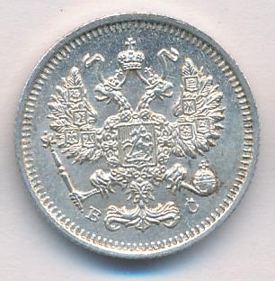 Лицевая сторона — гербовый орел, оборотная —обозначение номинала (10 копеекъ), окруженное венком из лавровой и дубовой ветвей и дата.