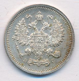Лицевая сторона — гербовый орел, оборотная —обозначение номинала (10 копеекъ), окруженное венком из лавровой и дубовой ветвей и дата.