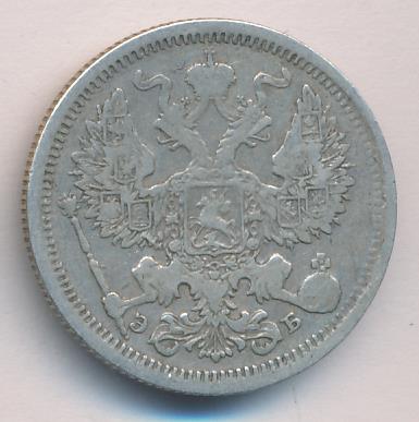 Лицевая сторона — гербовый орел, оборотная —обозначение номинала (20 копеекъ), окруженное венком из лавровой и дубовой ветвей и дата.