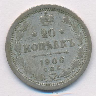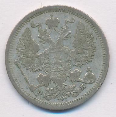 Лицевая сторона — гербовый орел, оборотная —обозначение номинала (20 копеекъ), окруженное венком из лавровой и дубовой ветвей и дата.