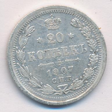 Лицевая сторона — гербовый орел, оборотная —обозначение номинала (20 копеекъ), окруженное венком из лавровой и дубовой ветвей и дата.