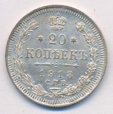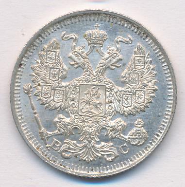Лицевая сторона — гербовый орел, оборотная —обозначение номинала (20 копеекъ), окруженное венком из лавровой и дубовой ветвей и дата.