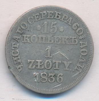 Указом от 15 октября 1832 года «для удобства торговых сношений» Николай I добавляет в ряд серебряных монет новый номинал — 15 копеек, соответствующий одному польскому злотому. Указом от 1 мая 1834 года разрешается чеканка всех номиналов Варшавскому двору. Для организации штемпельного производства из Петербурга 19 июня того же года высылаются рисунки, четыре пары штемпелей и четыре образцовых монеты.
