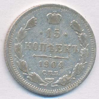 Лицевая сторона — гербовый орел, оборотная —обозначение номинала (15 копеекъ), окруженное венком из лавровой и дубовой ветвей и дата.