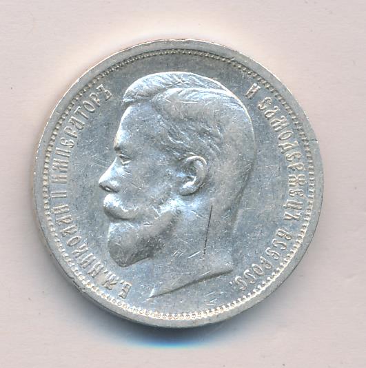 Лицевая сторона — портрет Николая II в круговой надписи «Б.М. НИКОЛАЙ II ИМПЕРАТОРЪ И САМОДЕРЖЕЦЪ ВСЕРОСС», оборотная — двуглавый орел, обозначение номинала (50 копеекъ) и дата.
