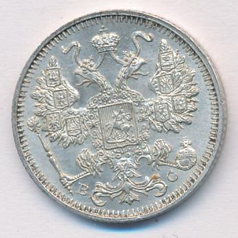 Лицевая сторона — гербовый орел, оборотная —обозначение номинала (15 копеекъ), окруженное венком из лавровой и дубовой ветвей и дата.