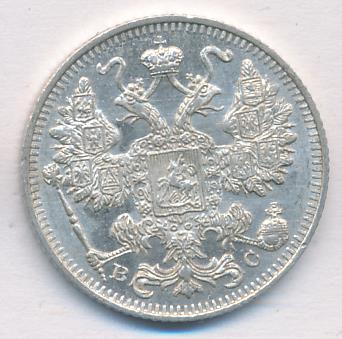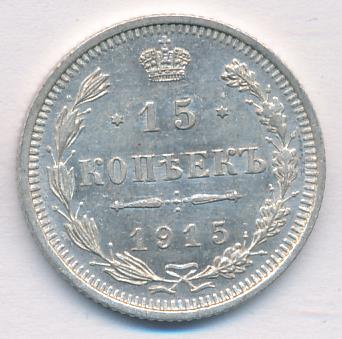 Лицевая сторона — гербовый орел, оборотная —обозначение номинала (15 копеекъ), окруженное венком из лавровой и дубовой ветвей и дата.