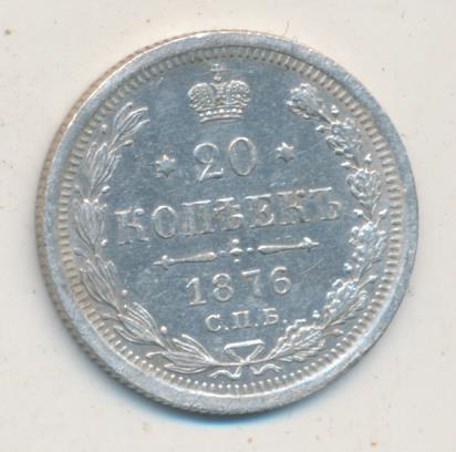 Лицевая сторона — гербовый орел, оборотная —обозначение номинала (20 копеекъ), окруженное венком из лавровой и дубовой ветвей и дата.
