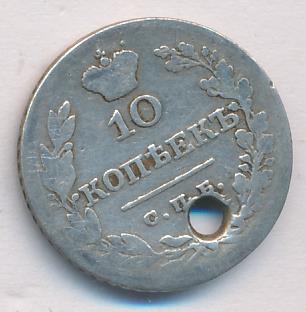 Лицевая сторона - «масонский орел» и дата, оборотная - окруженное венком из лавровой и дубовой обозначение номинала (10 копеекъ). Проба — 868, нормативный вес — 2,07 грамма.