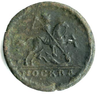 Всадник с копьем и надпись «Москва» на лицевой стороне и крестообразно расположенные обозначения номинала и года выпуска на оборотной. Нормативный вес — 4, 10 грамма.