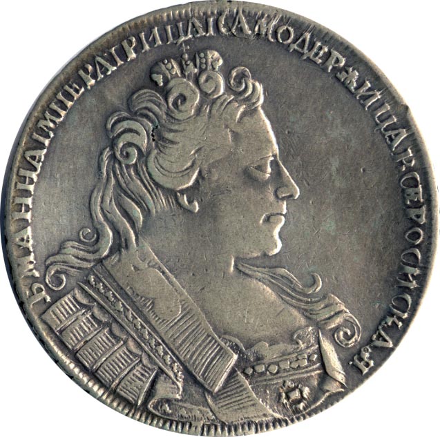 Рубль 1731-1734 годов «С брошью на груди/Без броши на груди»