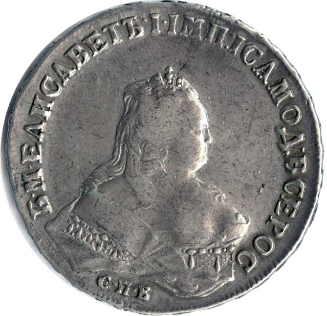 Лицевая сторона — портрет императрицы и надпись «Б М Елисаветъ I IMP I САМОД ВСЕРОС», оборотная — двуглавый орел и надпись «монета рубль» и дата. Проба — 802, нормативный вес — 25,85 грамма. Гурт — надпись «с.петербурхскаго монетнаго двора».