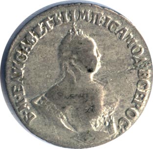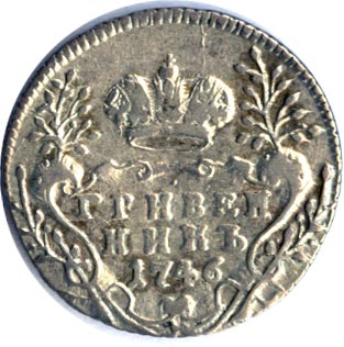 Лицевая сторона — портрет и надпись «Б М Елисаветъ I IMP I САМОД ВСЕРОС», оборотная — обозначение номинала (гривенникъ) и дата. Проба — 750 (с 1746 года - 802), нормативный вес — 2,59 грамма (с 1755 года — 2,42). Гурт — шнур.