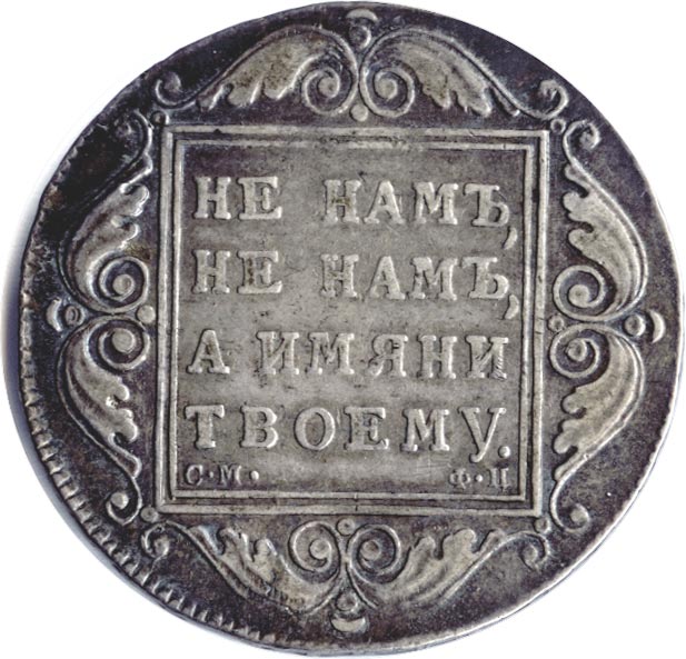Лицевая сторона - крестообразная монограмма из четырех П и I в центре, надпись «МОНЕТА ЦЕНА РУБЛЬ» и дата, оборотная - надпись «НЕ НАМ, НЕ НАМ, А ИМЯНИ ТВОЕМУ» в картуше. Проба — 868, нормативный вес — 20,73 грамма, гурт — надпись «восемдесятъ третеи съ одною третью пробы».