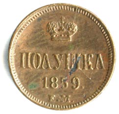 Лицевая сторона — вензель Николая I, оборотная — обозначение номинала (полушка) и дата. Нормативный вес — 1,28 грамма, гурт гладкий.