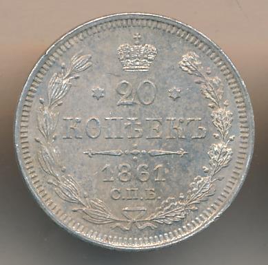 В 1861 году из-за перегруженности Петербургского двора заказы на чеканку части 20, 15 и 10 копеек размещаются на Парижском и Страсбургском монетных дворах. На этих монетах тот же знак двора СПБ, но отсутствует знак минцмейстера.