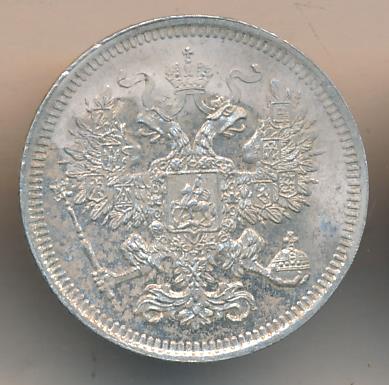 Лицевая сторона — гербовый орел, оборотная —обозначение номинала (20 копеекъ), окруженное венком из лавровой и дубовой ветвей и дата.