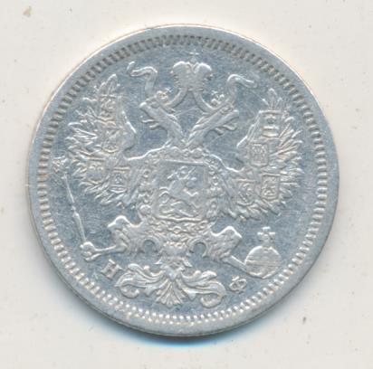 Лицевая сторона — гербовый орел, оборотная —обозначение номинала (20 копеекъ), окруженное венком из лавровой и дубовой ветвей и дата.