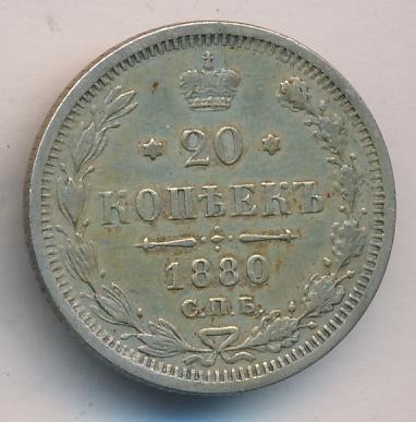 Лицевая сторона — гербовый орел, оборотная —обозначение номинала (20 копеекъ), окруженное венком из лавровой и дубовой ветвей и дата.