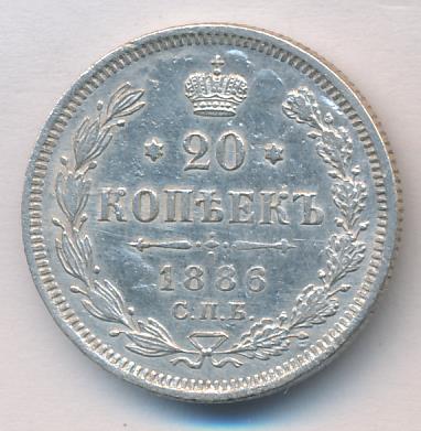 Лицевая сторона — гербовый орел, оборотная —обозначение номинала (20 копеекъ), окруженное венком из лавровой и дубовой ветвей и дата.