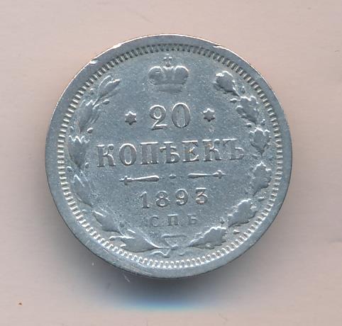 Лицевая сторона — гербовый орел, оборотная —обозначение номинала (20 копеекъ), окруженное венком из лавровой и дубовой ветвей и дата.