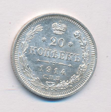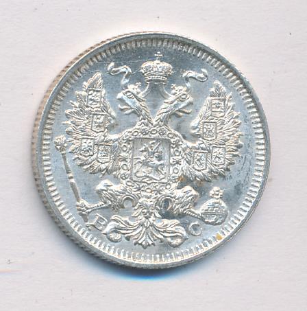 Лицевая сторона — гербовый орел, оборотная —обозначение номинала (20 копеекъ), окруженное венком из лавровой и дубовой ветвей и дата.