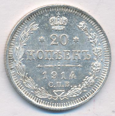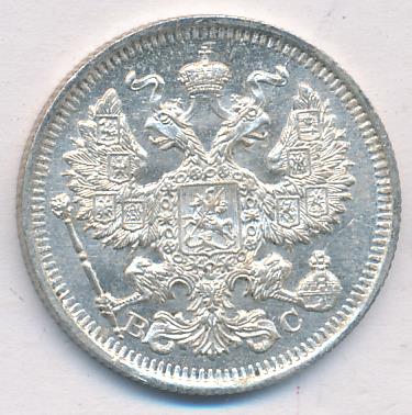 Лицевая сторона — гербовый орел, оборотная —обозначение номинала (20 копеекъ), окруженное венком из лавровой и дубовой ветвей и дата.