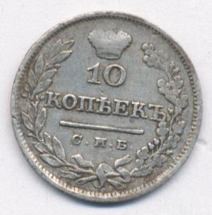 Лицевая сторона - двуглавый орел и дата, оборотная — обозначение номинала (10 копеекъ) в венке из лавровой и дубовой ветвей. Проба до 1813 года — 750, нормативный вес — 2,40 грамма; после 1813 года — проба 868, нормативный вес — 2,07 грамма.