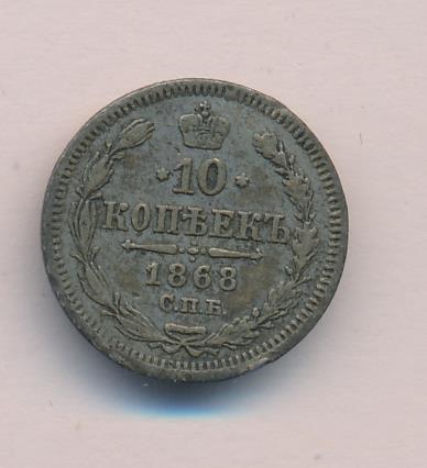 Лицевая сторона — гербовый орел, оборотная —обозначение номинала (10 копеекъ), окруженное венком из лавровой и дубовой ветвей и дата.