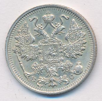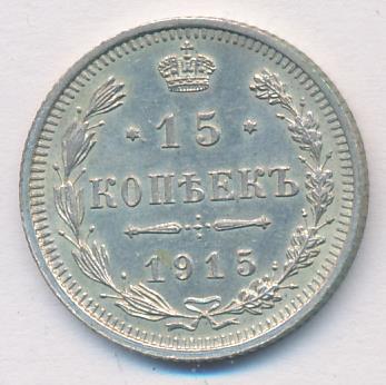 Лицевая сторона — гербовый орел, оборотная —обозначение номинала (15 копеекъ), окруженное венком из лавровой и дубовой ветвей и дата.