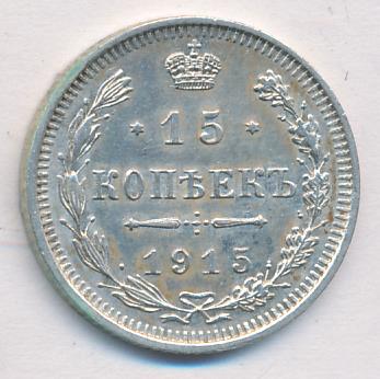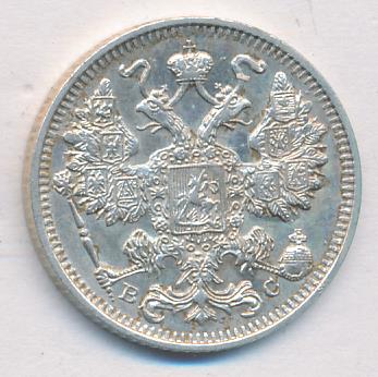 Лицевая сторона — гербовый орел, оборотная —обозначение номинала (15 копеекъ), окруженное венком из лавровой и дубовой ветвей и дата.