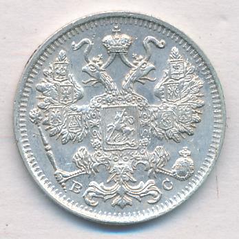 Лицевая сторона — гербовый орел, оборотная —обозначение номинала (15 копеекъ), окруженное венком из лавровой и дубовой ветвей и дата.