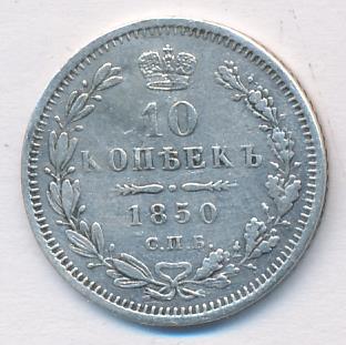 Лицевая сторона — новый гербовый орел с поднятыми крыльями, оборотная —обозначение номинала (10 копеекъ), окруженное венком из лавровой и дубовой ветвей и дата. Проба — 868, нормативный вес — 2,07 грамма.