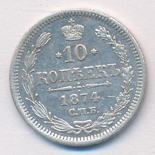 Лицевая сторона — гербовый орел, оборотная —обозначение номинала (10 копеекъ), окруженное венком из лавровой и дубовой ветвей и дата.