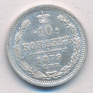 Лицевая сторона — гербовый орел, оборотная —обозначение номинала (10 копеекъ), окруженное венком из лавровой и дубовой ветвей и дата.