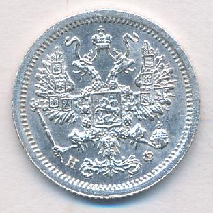 Лицевая сторона — гербовый орел, оборотная —обозначение номинала (10 копеекъ), окруженное венком из лавровой и дубовой ветвей и дата.