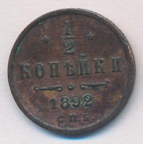 Лицевая сторона — вензель Александра II в венке из лавровой и дубовой ветвей; оборотная — обозначение номинала (1/2 копейки) и дата. Нормативный вес — 1,64 грамма, гурт рубчатый.