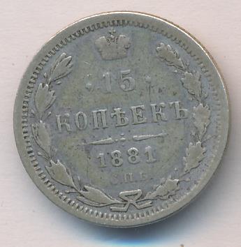 Лицевая сторона — гербовый орел, оборотная —обозначение номинала (15 копеекъ), окруженное венком из лавровой и дубовой ветвей и дата.