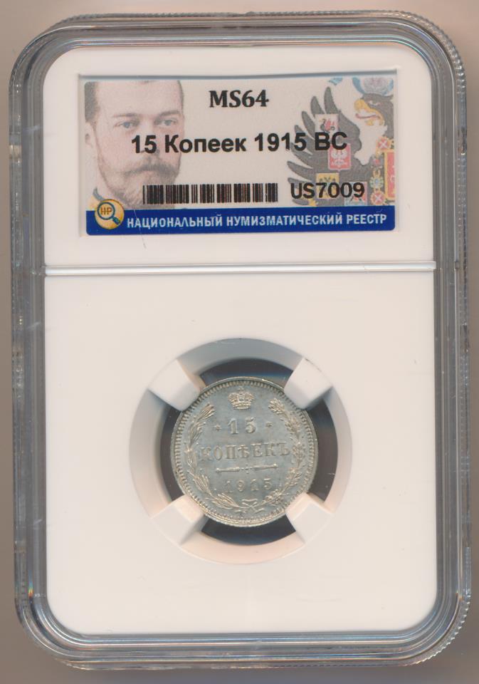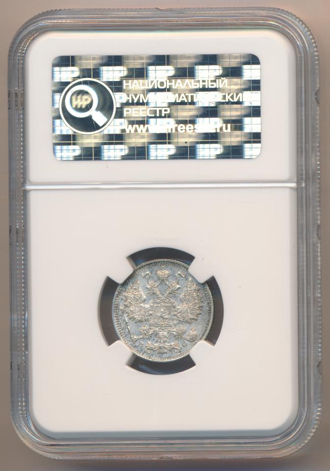Лицевая сторона — гербовый орел, оборотная —обозначение номинала (15 копеекъ), окруженное венком из лавровой и дубовой ветвей и дата.