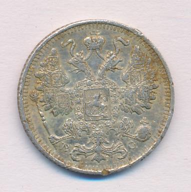 Лицевая сторона — гербовый орел, оборотная —обозначение номинала (15 копеекъ), окруженное венком из лавровой и дубовой ветвей и дата.