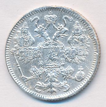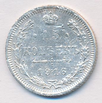 Лицевая сторона — гербовый орел, оборотная —обозначение номинала (15 копеекъ), окруженное венком из лавровой и дубовой ветвей и дата.