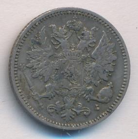 Лицевая сторона — российский двуглавый орел с гербом Великого княжества Финляндского на груди, оборотная — номинал и дата в венке из дубовых листьев. Проба — 750, нормативный вес — 1,27 грамма, гурт рубчатый.
