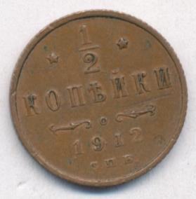 Лицевая сторона — вензель Александра II в венке из лавровой и дубовой ветвей; оборотная — обозначение номинала (1/2 копейки) и дата. Нормативный вес — 1,64 грамма, гурт рубчатый.